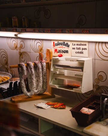 Nous sommes allés à la rencontre de Patrick Maury. A l'heure du rendez-vous dans sa petite boutique "à l'ancienne", aux alentours de midi, plus de 200 andouillettes étaient déjà vendues, et plus de 500 étaient en préparation dans l’arrière-boutique.